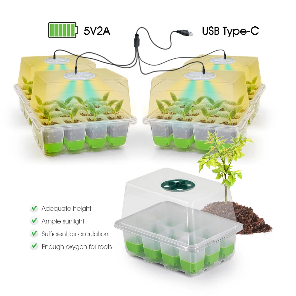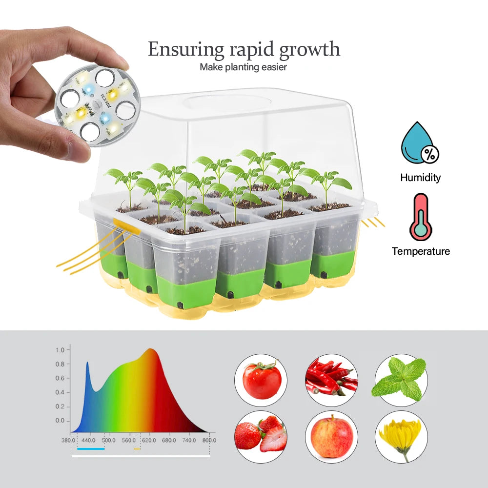 12Cell TPE Garden Seedling Tray with LED Planting Light for Indoor Seed Starter Germination Growth Box Nursery Cultivation Pots