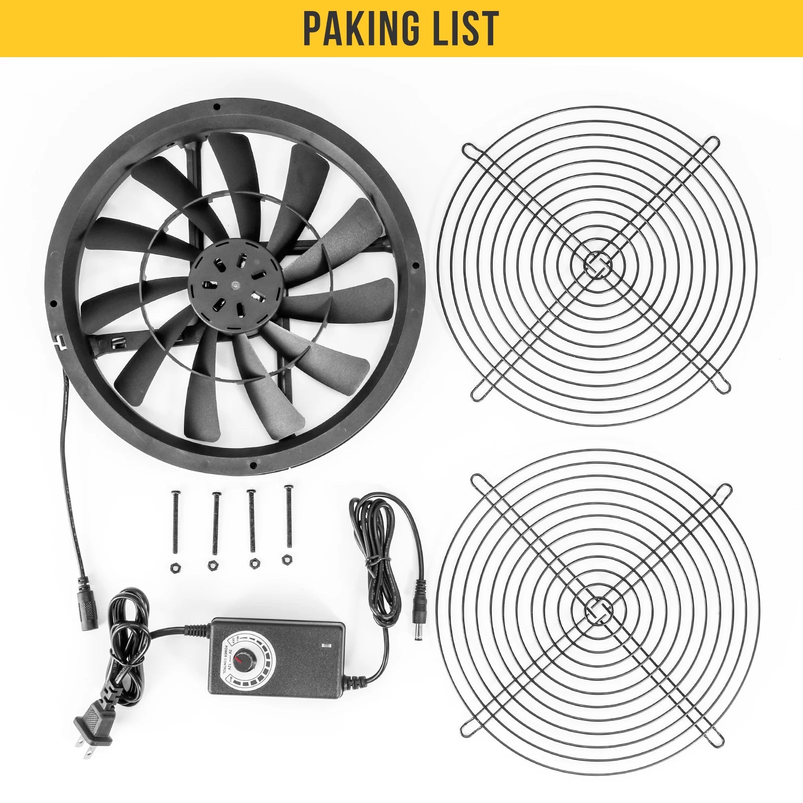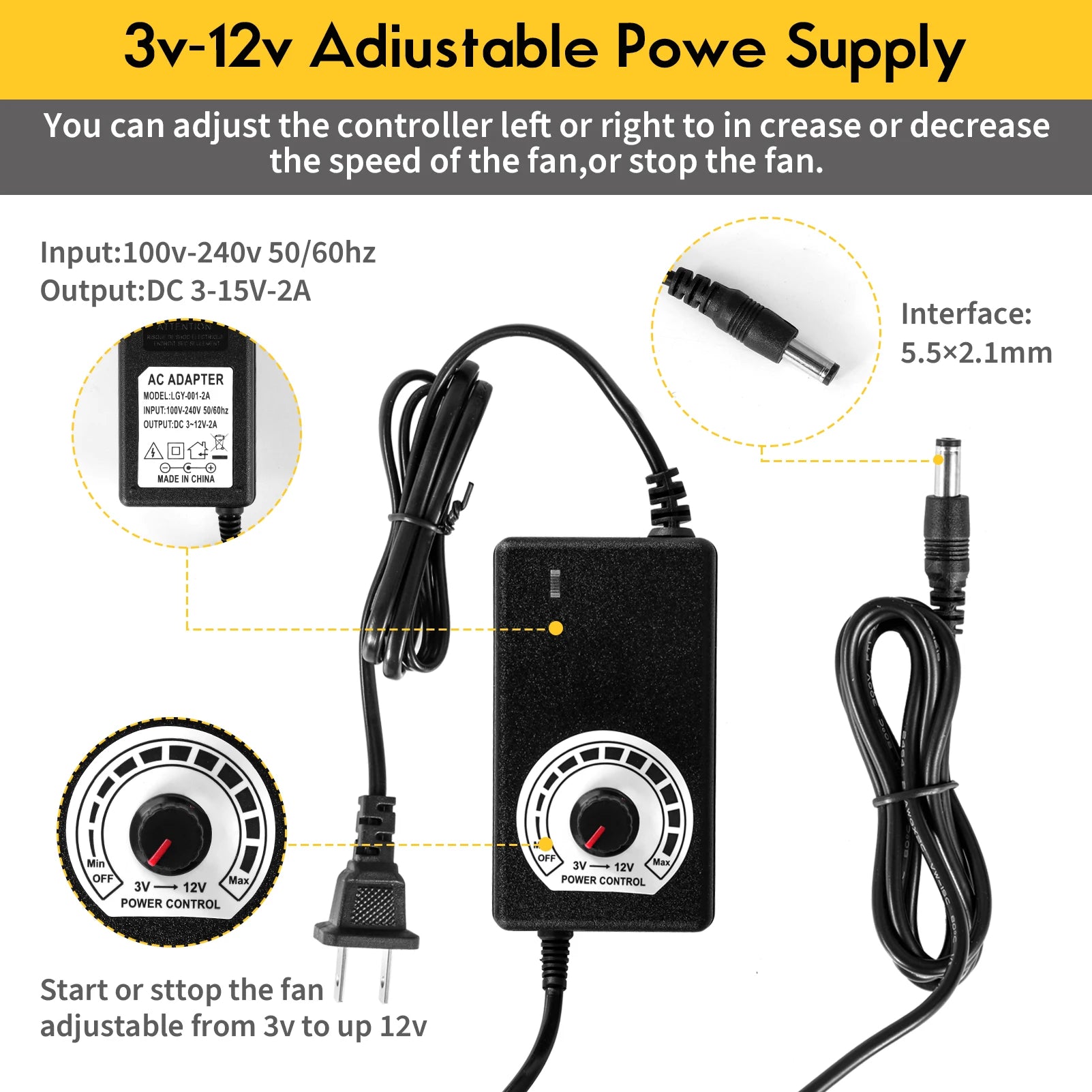 250mm 25cm DC Cooling Fan 12V 250X30mm with AC 110V 115V 220V 230V Power Cord Speed Controller Grow Tent Plant Adjustable