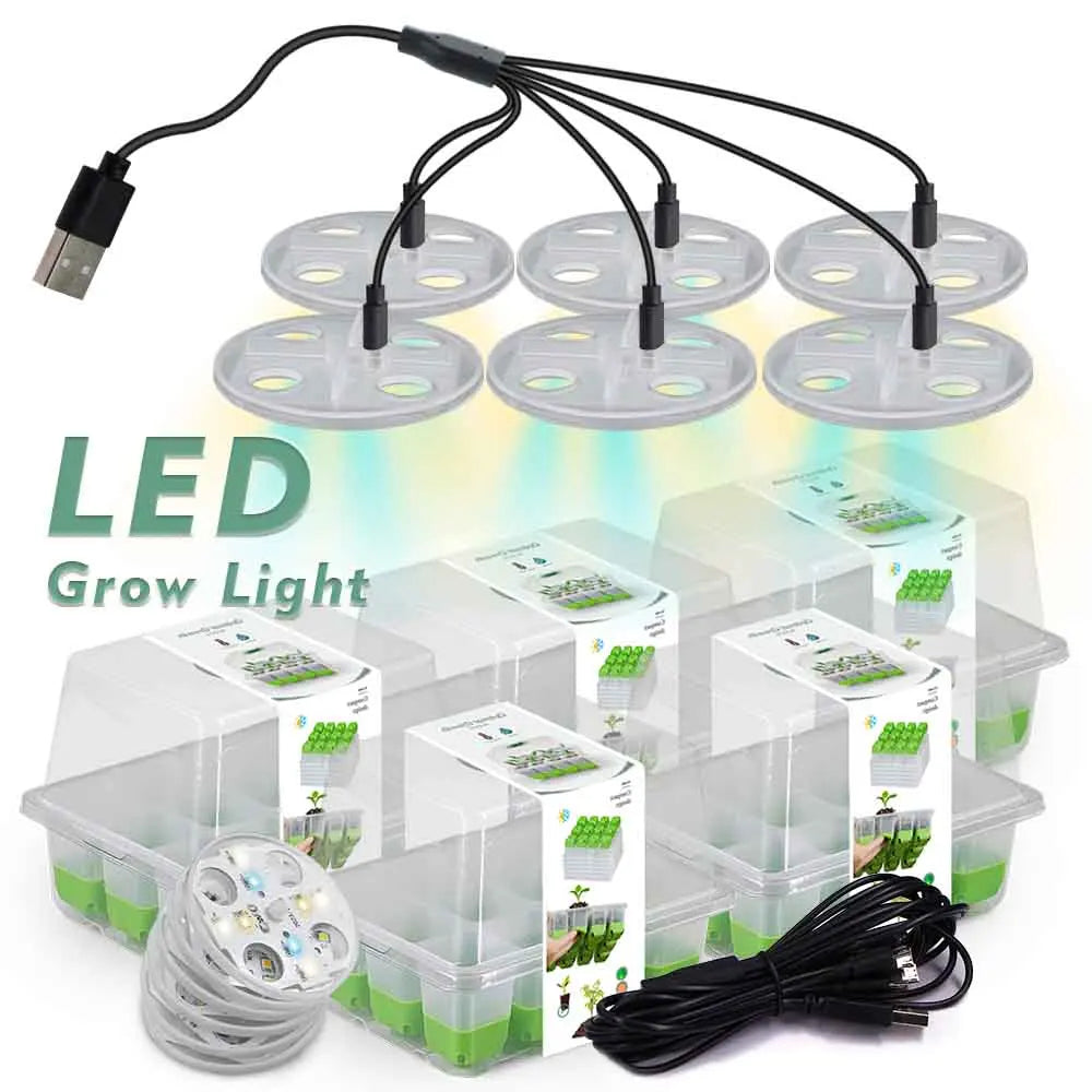 LED Grow Light Seedling Starter Tray Kit with Transparent Cover Indoor Garden Greenhouse Flower Plants Nursery Germination Box