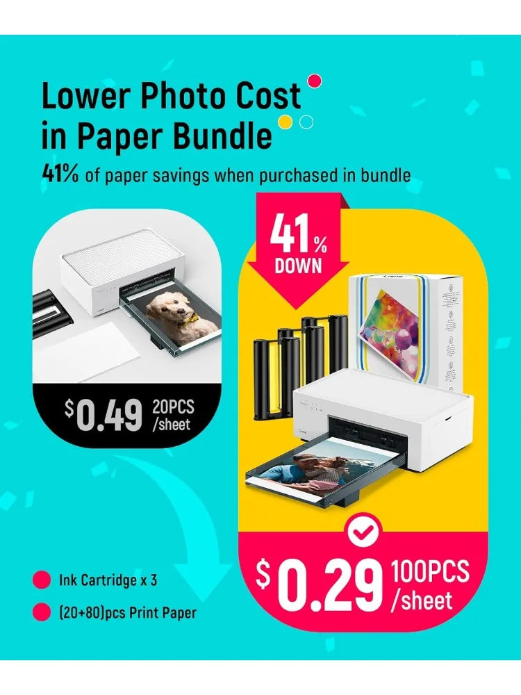 M100 4x6'' Photo Printer, Phone Printer 100 Sheets & 3 Cartridges, Full-Color Photo, Portable Instant Photo Printer for iP