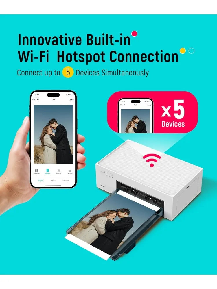 M100 4x6'' Photo Printer, Phone Printer 100 Sheets & 3 Cartridges, Full-Color Photo, Portable Instant Photo Printer for iPhone Android, Thermal Dye Sublimation, Wi-Fi Picture Printer 100 Papers
