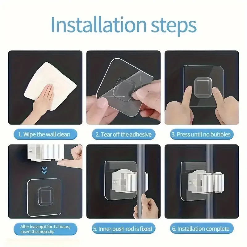 Mop holder Easy installation: no tools or drills required, just peel and stick, no damage or stain on furniture and wall.