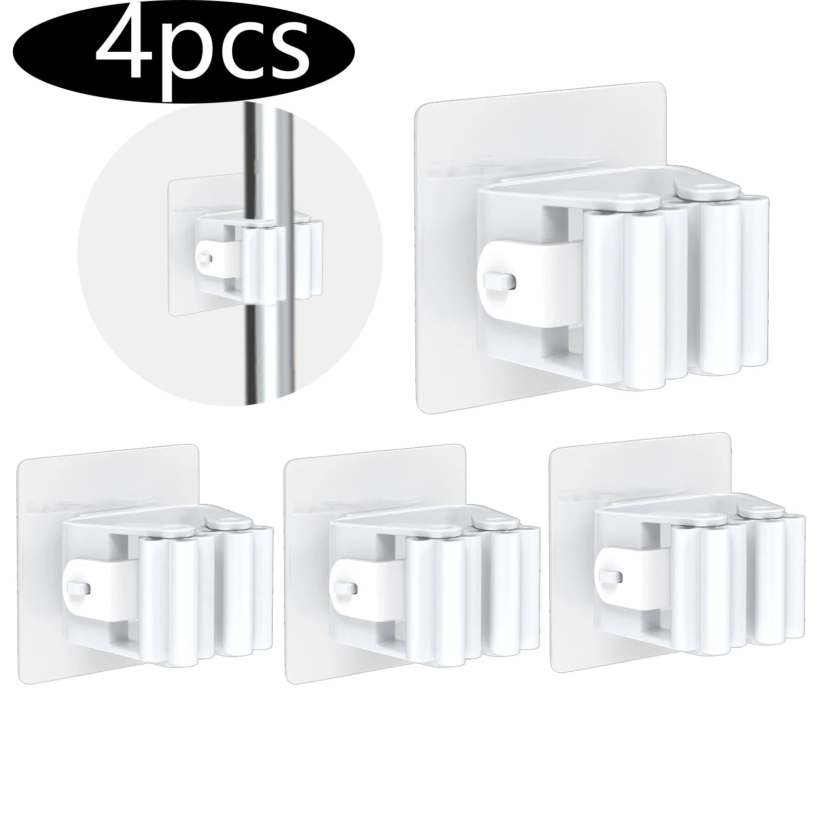 Mop Hanger 4 Pack,Broom Holder Self Adhesive Hanger Wall Mount for Hanging and Storaging Organizing Laundry Room Bathroom