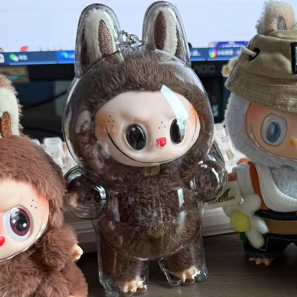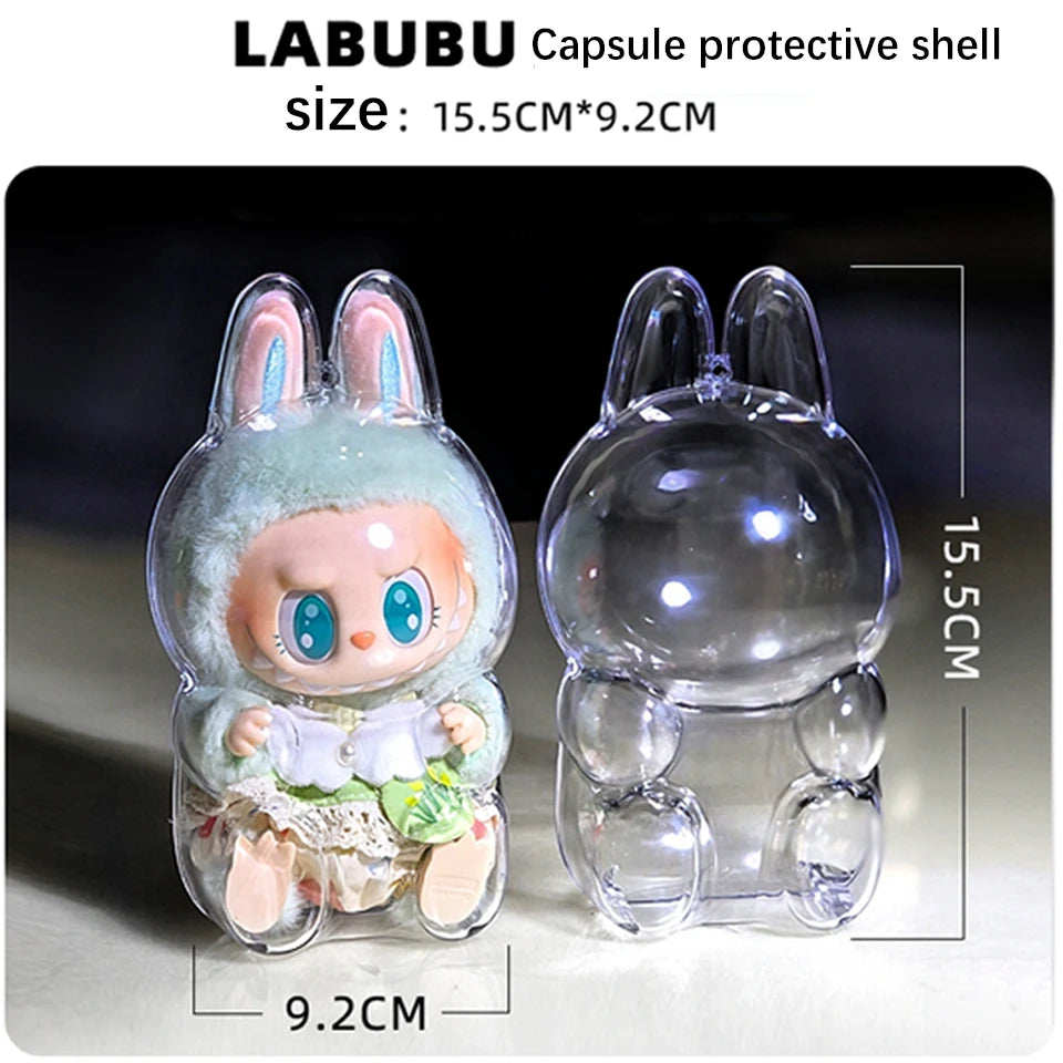 New For Labub V1 V2 Transparent Protective Cover Dustproof Hanging Plush Doll Bag Monster Toy Elf Doll Storage Box Display Cover