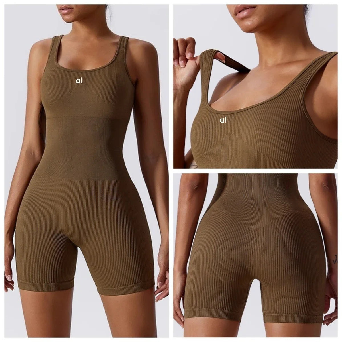 Summer High Quality Al Sports Women Yoga Belly Sports Onesie Chest Pad Threaded Tights Yoga Clothes Fitness Training Shorts